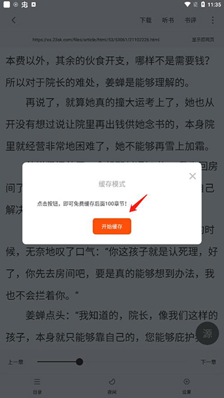 6、然后進入書架打開小說,點擊開始緩存就可以下載小說啦!