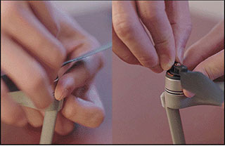 展開(kāi)飛行器機(jī)臂,將有橙色圓圈標(biāo)志的A槳葉對(duì)應(yīng)有橙色圓弧標(biāo)志的A電機(jī)槳座,往下按壓并按指示方向旋轉(zhuǎn),直至槳葉穩(wěn)固不脫落即可,反之亦然。