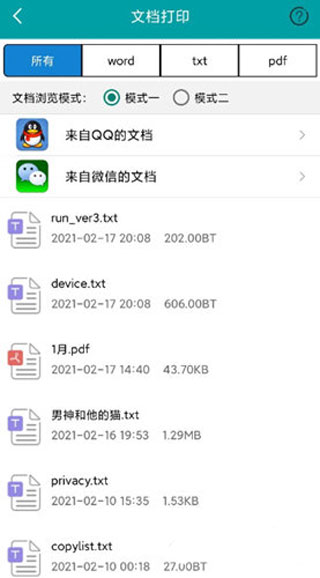 2、目前支持打印Word、TXT、PDF格式,選擇要打印的文件。