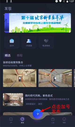 1.下載安裝之后打開如視VR APP,點(diǎn)擊中間的加號(hào)可以發(fā)布自己的視頻和照片其他。