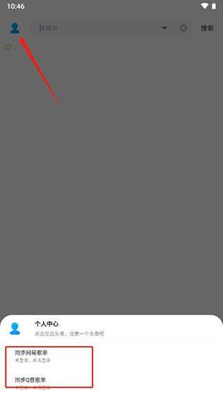 1、點(diǎn)擊左上角進(jìn)入個(gè)人中心,在下面就可以看到同步網(wǎng)易歌單和Q音歌單;