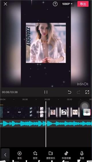 4、點擊【音頻】可以添加音樂、音效等,所有內(nèi)容編輯完成之后我們只需要點擊右上角的【導出】就能完成作品的制作