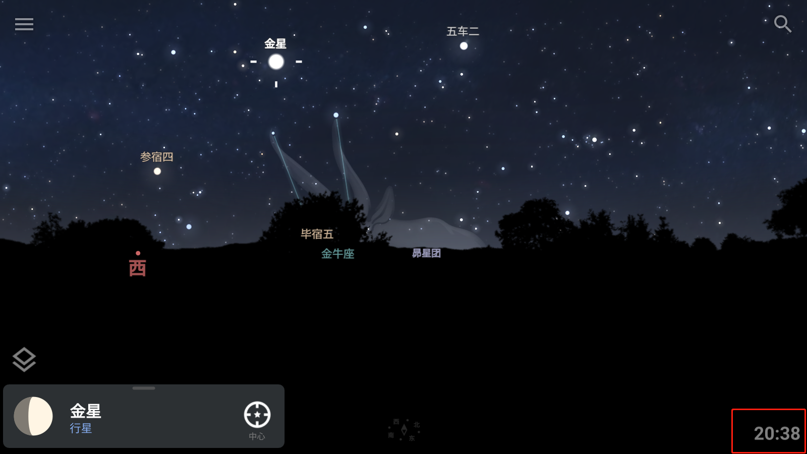打開和關(guān)閉大氣模擬,使用此選項(xiàng)可在白天查看星星或停用大氣折射。長(zhǎng)按可以調(diào)整光污染設(shè)置以模擬城市天空的天空視圖。