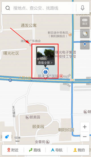 2、立即可顯示當(dāng)前位置街景,點(diǎn)擊【查看全景】