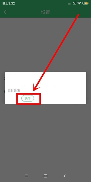 5、進(jìn)入到定時(shí)停止播放這個(gè)頁面中之后,在該頁面中我們找到定時(shí)關(guān)閉這個(gè)選項(xiàng),點(diǎn)擊該選項(xiàng)下方的關(guān)閉按鈕,即可成功關(guān)閉該功能。