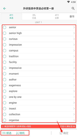 4、選擇其一之后就可以順選或者是隨機選擇需要學習的單詞;