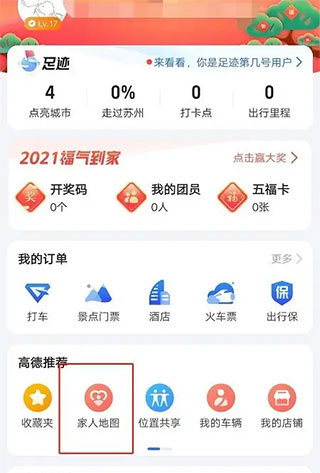 點擊家人地圖打開高德地圖,點擊我的,點擊家人地圖。