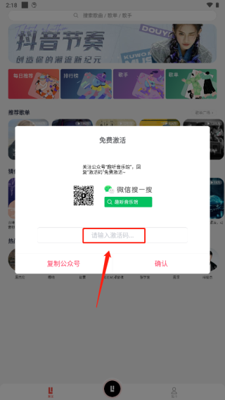1、下載安裝趣聽音樂,打開app復(fù)制公眾號(hào)