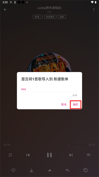 5、輸入歌單名稱,即可導入到歌單