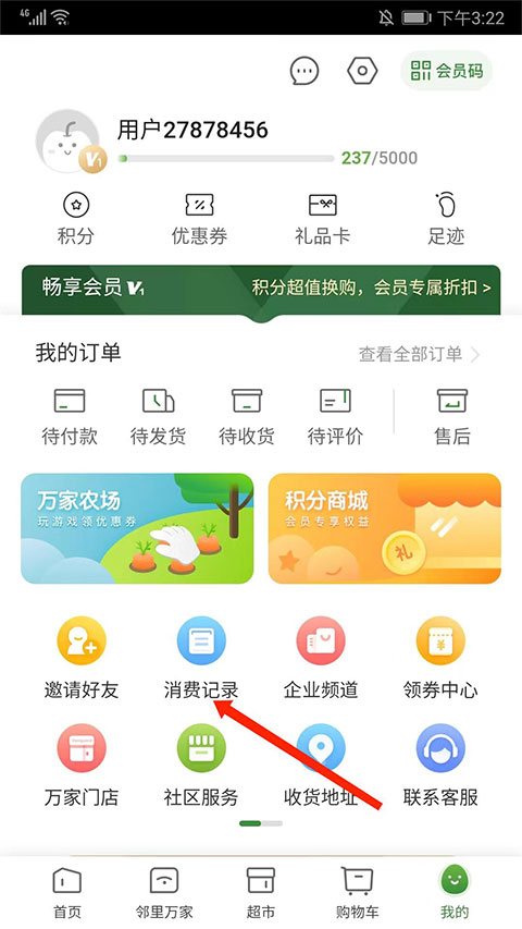 2、進入用戶中心界面,選擇“消費記錄”圖標,