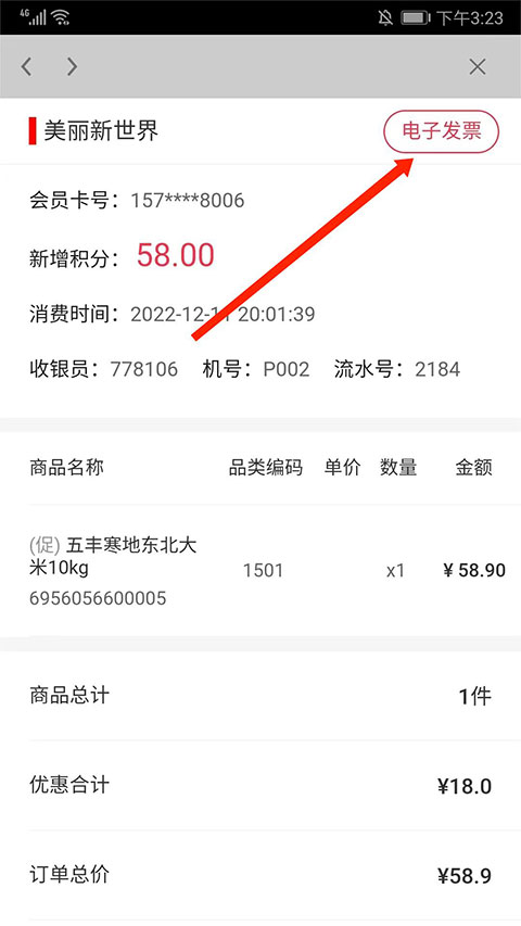 4、進入訂單詳情界面,選擇右上角“電子發(fā)票”選項,
