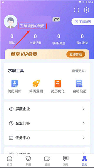 2、然后點擊個人頭像旁邊的【編輯我的簡歷】按鈕;