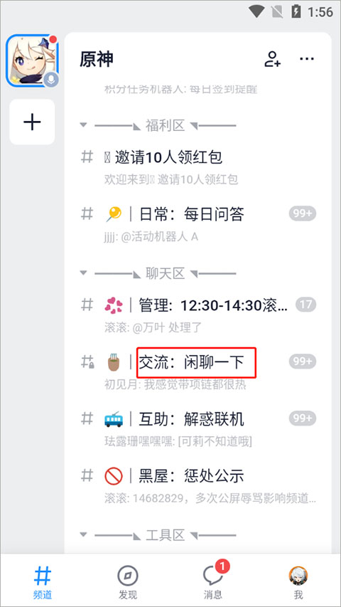 1、進(jìn)入Fanbook安卓最新版,在頻道出點(diǎn)擊我想創(chuàng)建服務(wù)器