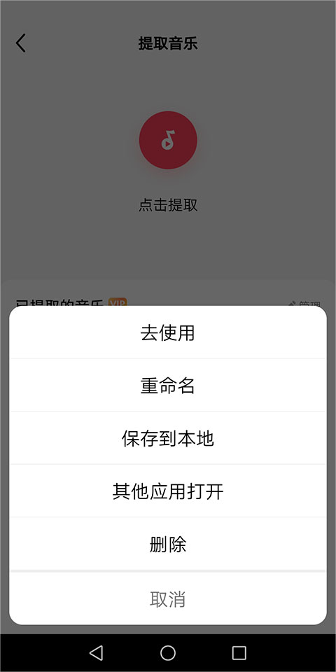 提取成功后點擊提取出的音頻文件右側的功能菜單(下圖綠色箭頭所指)
