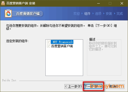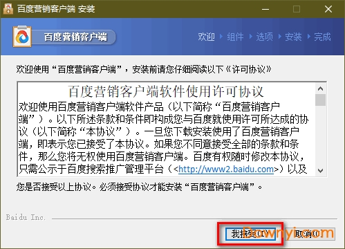 1、在下載百度營銷客戶端,之后雙擊文件“baiduyingxiaokehuduan_v6.2_downyi.com.exe”開始安裝: