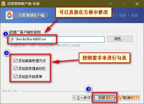 5、按照下圖所示來進行設(shè)置安裝路徑,設(shè)置完成后點擊“安裝”: