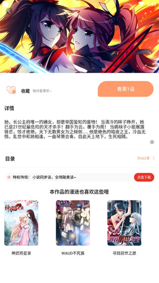 3、功能強(qiáng)大:批量下載;自由選擇重力感應(yīng)、橫豎屏閱讀手動(dòng)縮放大小,自動(dòng)識(shí)別手機(jī)屏幕大小分屏閱讀。除傳統(tǒng)漫畫閱讀功能之外。