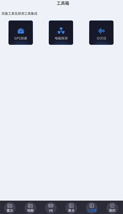 3、打開《工具箱》使用gps測速、電磁探測、分貝儀等。