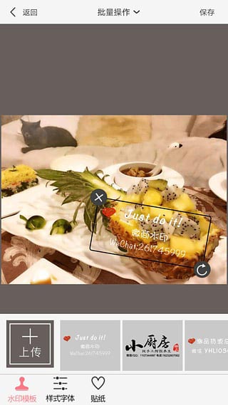 5:系統(tǒng)水印模板,可以隨意修改水印內容,包括頭像、微信、QQ、微博、電話、地址等聯(lián)系方式;