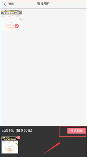 3、點擊批量水印后即進行手機的相冊選擇照片,點擊開始制作;