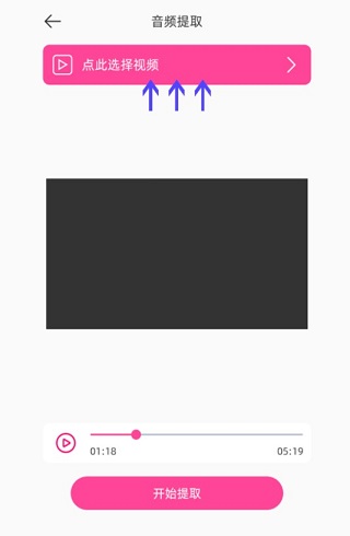 如圖,先點(diǎn)擊箭頭處選擇要提取的視頻,再點(diǎn)擊下方提取按鈕便可得到視頻的背景音樂(lè)