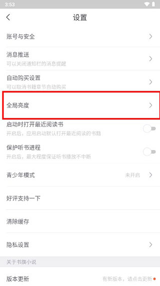 3、接著進入設(shè)置頁面中,點擊打開“全局亮度”