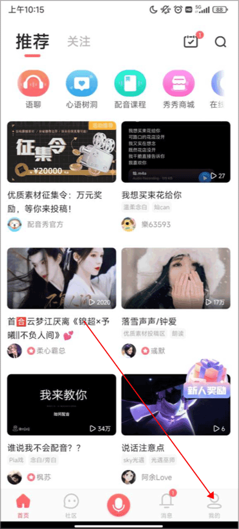 1、下載安裝好配音秀app,進入軟件首頁,點擊我的。
