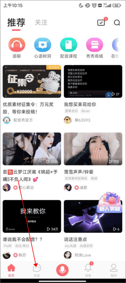 1、下載安裝好app,進入軟件首頁,點擊社區(qū)。