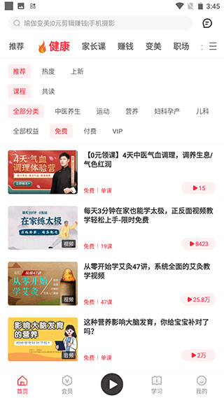 3、健康模塊有非常多的課程供我們選擇觀看學(xué)習(xí)。