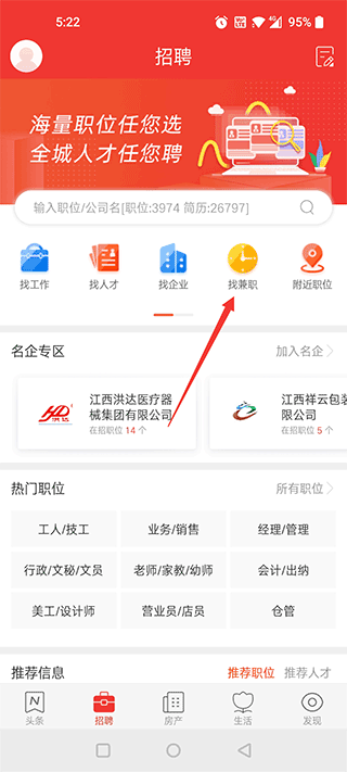 我們點(diǎn)擊下方的招聘,然后進(jìn)去后里面有個(gè)兼職,如圖所示