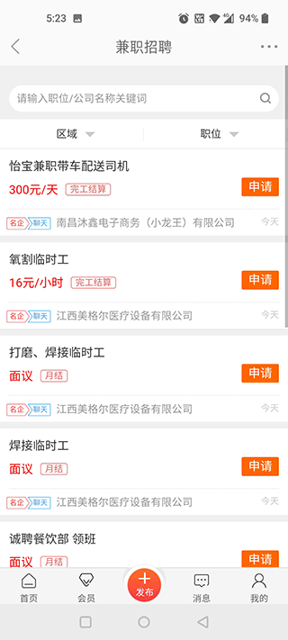 2、上面就會(huì)顯示出來(lái)工作內(nèi)容和地點(diǎn)時(shí)間報(bào)酬了,當(dāng)然你還可以選擇上方的區(qū)域按鈕調(diào)整一下位置