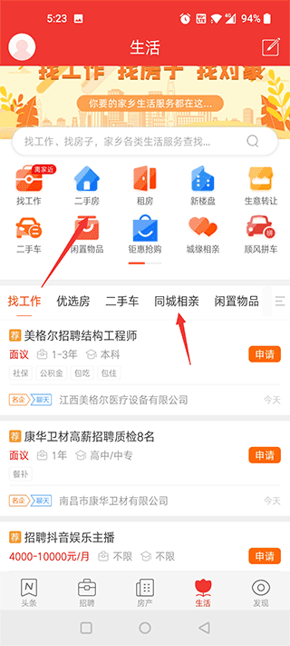 3、軟件的功能也是非常齊全的,你可以同城相親,也能看二手房,二手車(chē)等