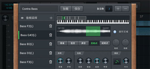 ②最上方一欄顯示當(dāng)前音色名稱,加載和保存音色。對于復(fù)音數(shù):如果你需要樂器同時播放幾個音,比如鋼琴和弦,那么需要加大復(fù)音數(shù)。但是復(fù)音數(shù)過高會加大CPU的負(fù)荷產(chǎn)生卡頓,所以需要針對設(shè)備的具體情況進(jìn)行調(diào)整。