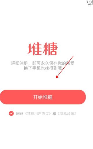 1、下載安裝后打開軟件,點擊開始“堆糖”