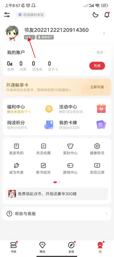 2、登錄成功之后,在自己的書架這里有免費(fèi)贈送的小說