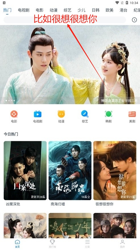 4、最后你也可以根據(jù)上方的搜索欄進(jìn)行搜索你想看的視頻。