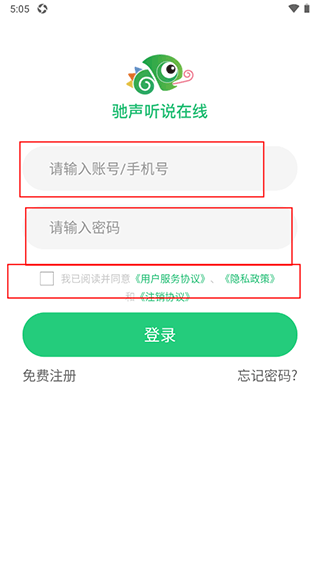 2、然后填寫用戶名和密碼,再認真查看下方的條款并同意之后就可以點擊登錄了。