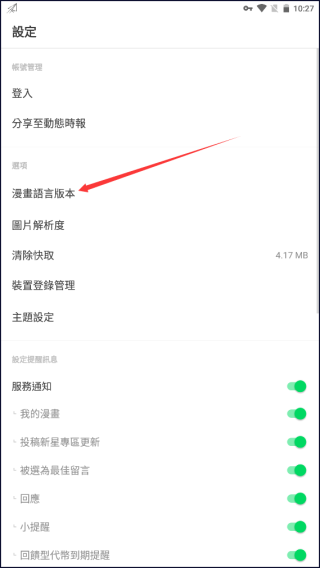 2、點擊漫畫語言版本選項
