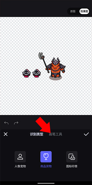 2、在打開的相冊界面中選擇想要摳圖的圖片并等待一段時間,可以看到圖片背景已經(jīng)被智能扣除,如果想要進一步扣除圖片內(nèi)容,點擊下方的畫筆工具