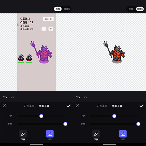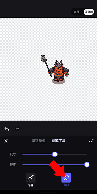 3、并選擇涂抹、擦除其中之一,并使用手指在需要修改的畫面上滑動,即可進一步扣除不需要內(nèi)容