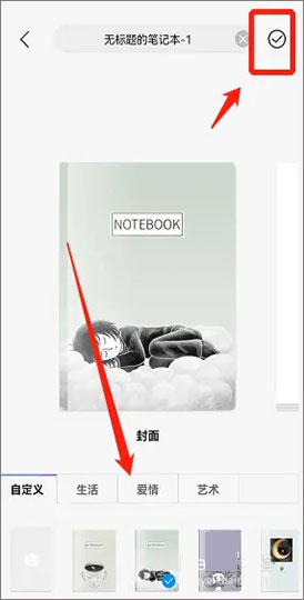 3、選擇一個圖案作為筆記的封面,并選擇右上方的打勾圖標點擊進入。