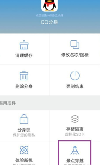 1、打開分身應(yīng)用程序,進(jìn)入應(yīng)用程序主頁,即可在頁面上看到創(chuàng)建的分身(如QQ分身)。