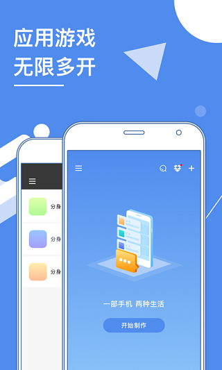 1、支持更多應(yīng)用游戲的多開、雙開,使用更穩(wěn)定、快速、更安全2、分身獨(dú)立安裝,管理更方便