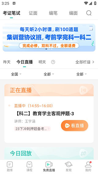 下載一起考教師APP—點(diǎn)擊免費(fèi)直播—選擇考試目標(biāo)—免費(fèi)看直播課