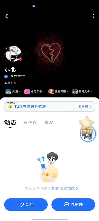3、打開對方個人主頁后進行查看,然后點擊“關注”添加對方為好友。
