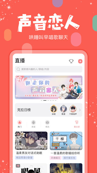 4、聲優(yōu)互動:各類聲線主播,治愈系聲音,互動暢談。
