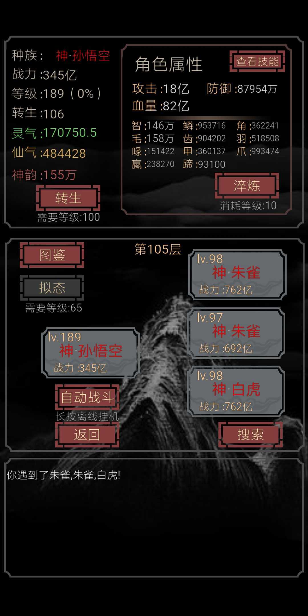 擬態(tài)boss的話,打敗105層孫悟空。神韻要是*高的,然后你就會發(fā)現(xiàn)大羅金仙也可以擬態(tài)了,就會出來100-105的boos,前提是你要把105打完。