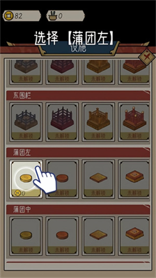 3、在這里選擇蒲團、圍欄、佛像等各種道具,不過前期錢幣不夠,只能購買蒲團。