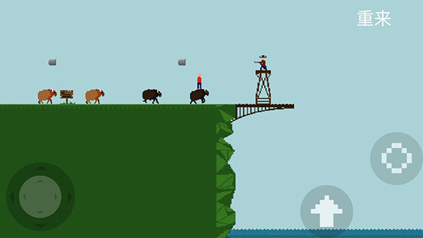 1、玩家需控制角色在橋梁間跳躍,避開(kāi)各種障礙,成功落入水中。