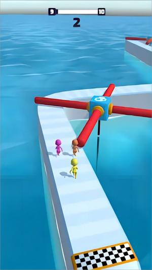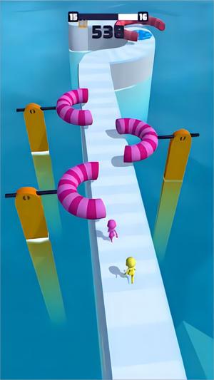 3、按住運(yùn)行,還可以自由的行動(dòng),一切操作容易的很,出行了大量的障礙物,并與他人競(jìng)爭(zhēng)到底,你就可以開(kāi)啟新的關(guān)卡!